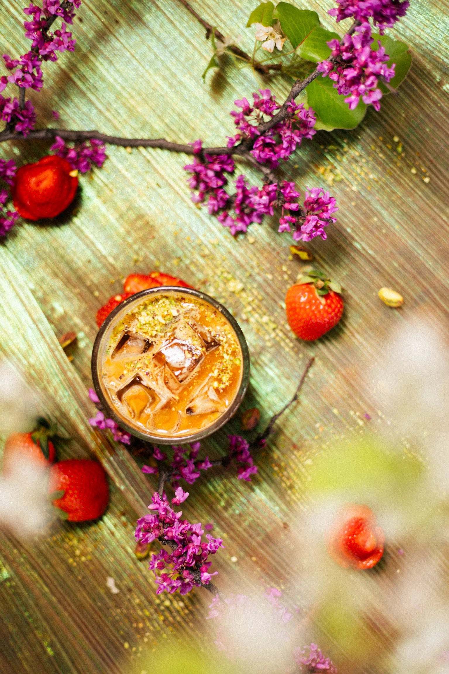 strawberry pistachio latte