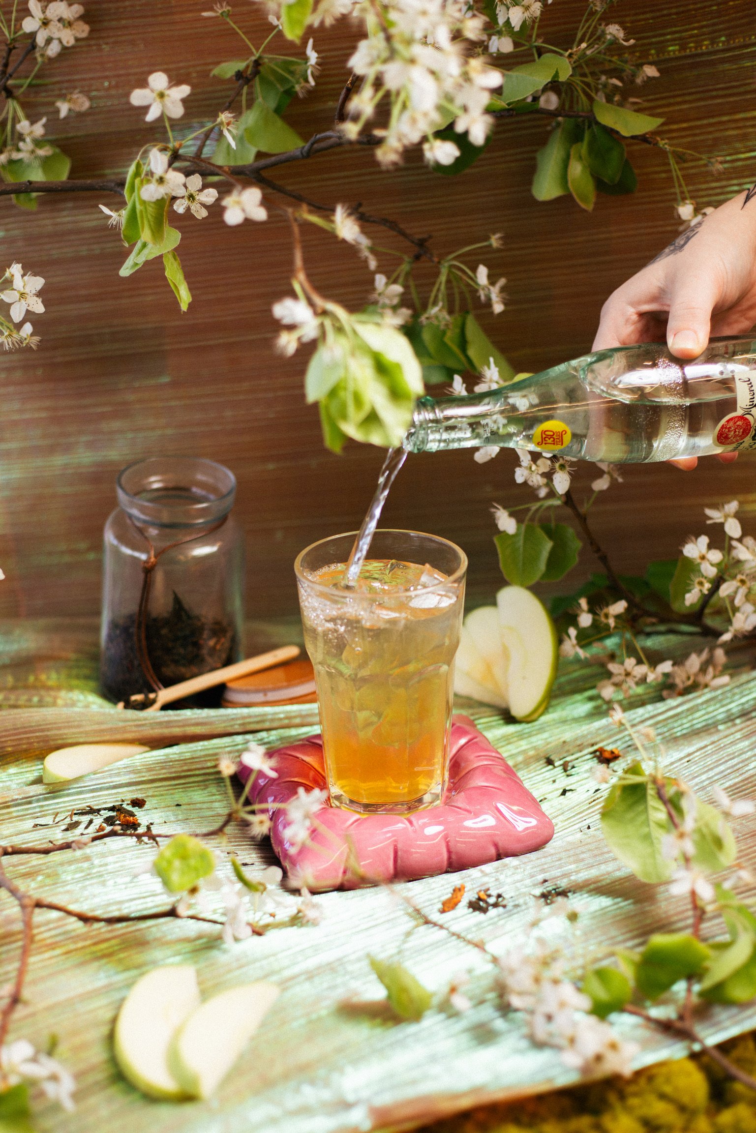 housemade green apple syrup + orchard apple white tea + topo chico // add a shot of milk of matcha
